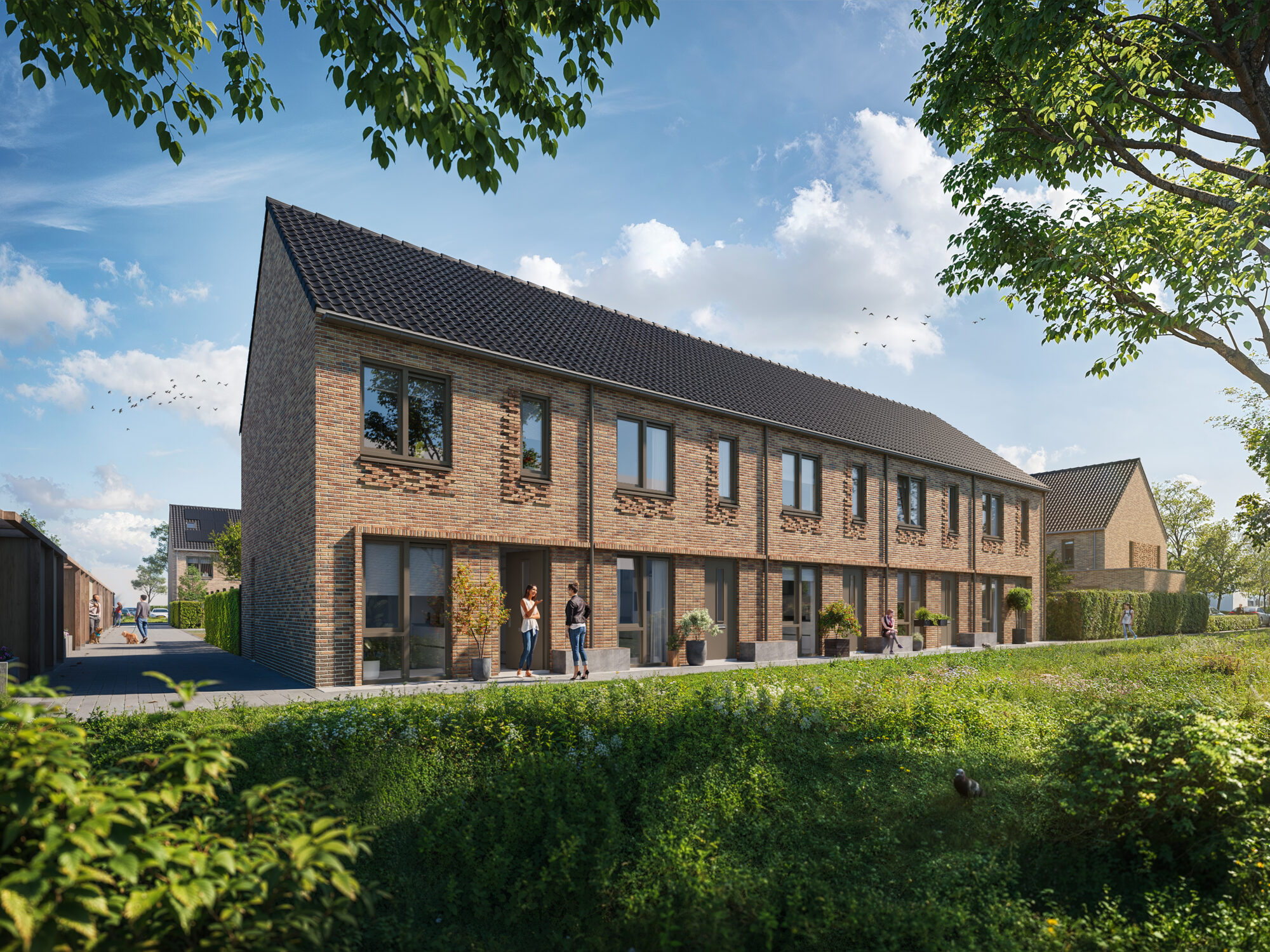 In Campus Driene bouwen we samen aan geluk. Hier hebben we aandacht voor de aarde, maatschappij, mens en continuïteit. Maar hoe doen we dat precies? Blue vertelt: ”Aan de aarde wordt gedacht door het behoud van de bomen, de flora en fauna en de wadi’s. Ook denken we aan de maatschappij door te bouwen voor een brede doelgroep. Een mix van koop en huur. We bedienen de hele markt. Zo bouwen we sociale huur, middenhuur, betaalbare koop, middeldure koop en luxe woningen. Aan de mens wordt gedacht door het creëren van verschillende hofjes waarin ontmoeten centraal staat. Tot slot hebben we aandacht voor de continuïteit door de samenwerking in dit unieke plan. De samenwerking met de gemeente en Leyten is ontzettend goed. We werken écht samen aan deze nieuwe leefomgeving. Daarnaast hebben we vanuit Trebbe een vast team. We wisten al bij de start wie onze uitvoerder ging worden. Daardoor konden we het hele uitvoeringsteam meenemen in het ontwerp en filosofie.”